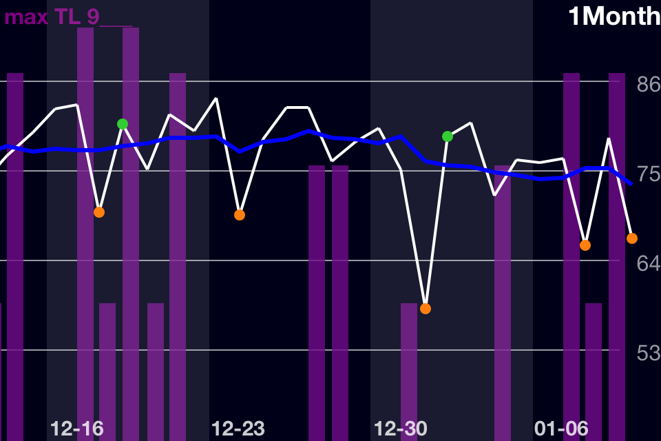 Below is a screen shot of mine from over the Christmas holidays. There is a marked drop in HRV on New Year’s day following a late night of NYE celebration that included several drinks.